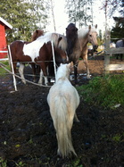 Tallille saapui sunnuntaina pieni miniponi Simba. Uusi sydäntensulattaja on minikokoinen, reilu vuotias shetlanninponiruuna. Ensimmäisenä päivänä tutustuttiin issikkalaumaan turvallisesti aidan toiselta puolen. Varsalaumassa päästiinkin jo ihan "piireihin". (kuvat: Veera Järvensivu)