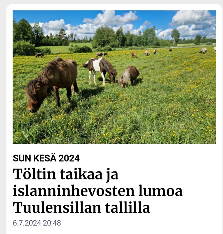 Koska olet viimeksi istuskellut heinäpellon laidalla ja seurannut hevosia? Kerran siellä oli kanssamme Sun Radion toimittaja tutustumassa islanninhevosiin. Voit kuunnella haastattelun täältä: SunRadio