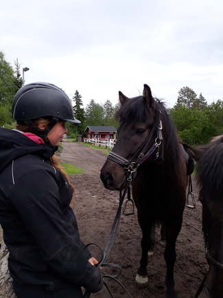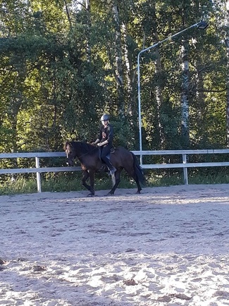 Parituntisia maastoja muutama takana. Gáski liikkuu hienosti ratsastajan alla. Mennyt myös vähän yleisillä teillä, liikenteen seassa. Hieno ravi, hyvä töltti ja pyörivä laukka.