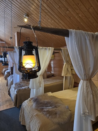 Aittaan mahtuu majoittumaan 10 henkilöä, yläkerran siskonpetimahdollisuudella vieläkin enemmän.