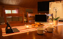 Vanha sauna tarjoaa myös tunnelmalliset majoitustilat tai tilat pienen kokouksen puitteiksi.