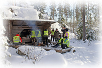 Kaikilta sujui kenttä-pikkumaastoretki hyvin – lapset ja ensikertalaiset pärjäsivät hyvin ja Siperialaiselle ja Vietnamilaiselle vaihto-opiskelijalle oli mukava kokemus, kun saatiin vielä muutama hiutale luntakin. Hevoset oli hyvin valittu ja olivat oikein osaavia asiakaspalvelijoita. Kiitokset ohjaajalle; hän teki ison työn yksin ja oli koko ajan ystävällinen ja positiivinen! Kota ja tulentekomahdollisuus oli bonusta.